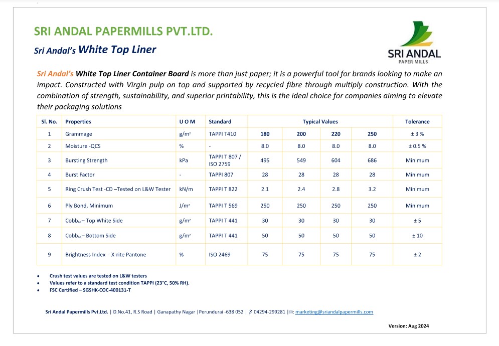 Sri Andal’s White Top Liner Container Board is more than just paper; it is a powerful tool for brands looking to make an
